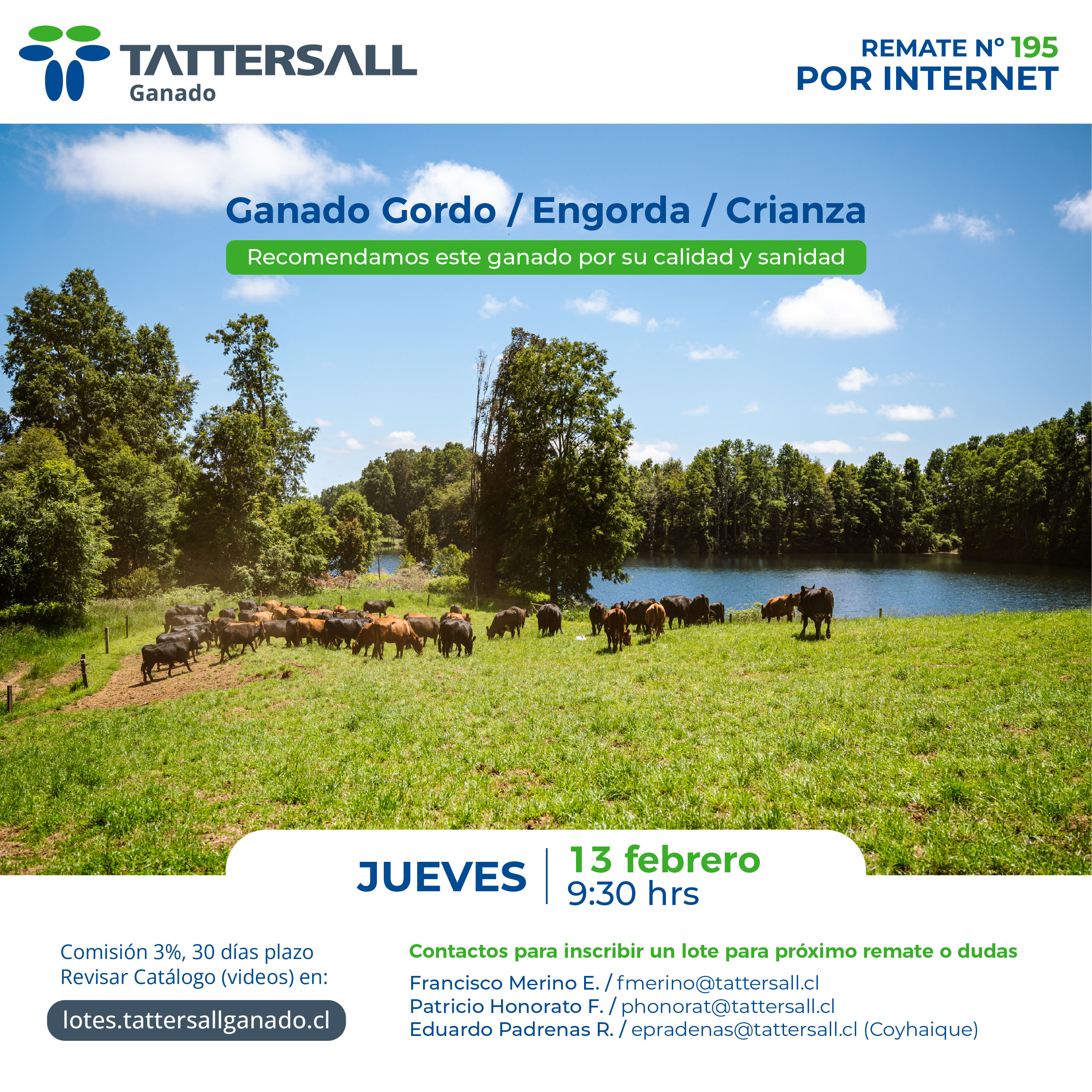 Tattersall Ganado, es una empresa dedicada a la comercialización e intermediación de ganado en sus distintas categorías, principalmente bovinos, ovinos, equinos y cerdos. Nuestros canales de transacción son recintos de ferias, corretaje en privado y comercio electrónico. Nuestra participación de Mercado nacional es de 33%. Nuestra empresa fue fundada en el año 1913, por tanto contamos con una trayectoria de 100 años de experiencia en el mercado agrícola ganadero al servicio de nuestros clientes.